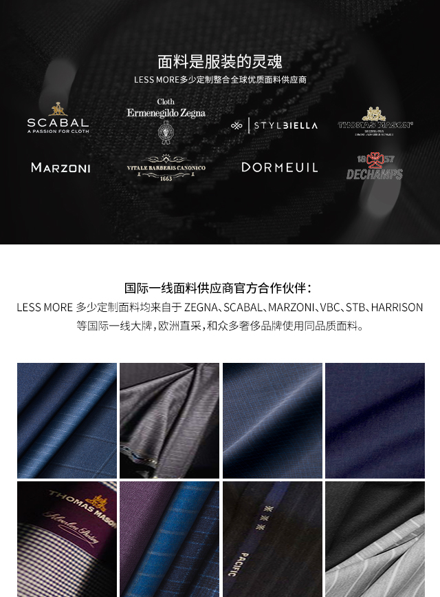 LESS MORE 多少定制是能夠提供男士全品類定制產(chǎn)品的生活方式品牌,對(duì)于中國(guó)商務(wù)男士來(lái)說(shuō),定制是對(duì)西裝最認(rèn)真的態(tài)度。